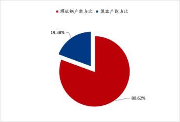 圖2:湖北省建筑厚壁無縫鋼管生產企業螺紋鋼與線盤產能占比(單位:%)