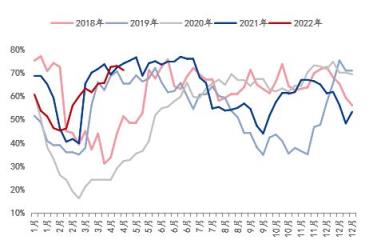 結合相應的產能利用率來看,截止至2022年4月底,湖北省螺紋鋼產能利用率約在71.22%,高于近5年的每年平均水平,且從走勢圖上看,基本處于歷年產能釋放值的高位運行;而線盤產能利用率約在67.54%,尚且低于平均值水平,從走勢圖上看,并未達到峰值水平在釋放。由此看來,隨著新增產能的釋放,若產能利用率維持在相對高位運行,將一定程度上在供應方面做了疊加效應。當然,供應能力的單方面增加并未能說明價格一定會出現偏低運行的表現,因此需結合需求的表現來驗證一下。