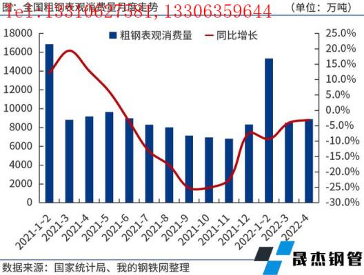 統(tǒng)計(jì)局、海關(guān)總署數(shù)據(jù)顯示,2022年4月份,全國粗鋼產(chǎn)量9277.5萬噸,厚壁無縫鋼管凈出口402.1萬噸,折合粗鋼凈出口418.9萬噸(厚壁無縫鋼管按0.96折算),鋼坯、鋼錠凈進(jìn)口24.9萬噸,粗鋼表觀消費(fèi)量8884萬噸,同比下降3.1%。(注:2021年4月份,全國粗鋼產(chǎn)量修正為9786.4萬噸,粗鋼表觀消費(fèi)量修正為9166萬噸。)