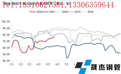 鋼坯盈利情況:本周唐山地區主流樣本無縫厚壁鋼管廠家平均鐵水不含稅成本為3559元/噸,平均鋼坯含稅成本4572元/噸,周環比下調92元/噸,與5月28日當前普方坯出廠價格4470元/噸相比,無縫厚壁鋼管廠家平均毛利潤-102元/噸,周環比上調52元/噸。