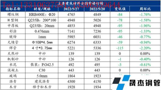 免責聲明:本網站(山東聊城晟杰無縫鋼管廠www.yztongfa.com)刊載的“建筑原材料周報(5.23-5.27)”等均源于網絡,版權歸原作者所有,且僅代表原作者觀點,本文所載信息僅供參考。轉載僅為學習與交流之目的,如無意中侵犯您的合法權益,請及時聯系刪除。本網站刊登此篇文章并不意味著本站贊同其觀點或證實其內容的真實性,我們不對其科學性、嚴肅性等作任何形式的保證。如果侵犯了您的版權,請盡快聯系我們予以撤銷,謝謝合作!
