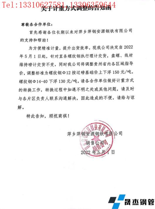 免責(zé)聲明:本網(wǎng)站(山東聊城晟杰無縫鋼管廠www.yztongfa.com)刊載的“萍鄉(xiāng)萍鋼安源鋼鐵有限公司關(guān)于對貴州區(qū)域計(jì)重方式調(diào)整的告知函”等均源于網(wǎng)絡(luò),版權(quán)歸原作者所有,且僅代表原作者觀點(diǎn),本文所載信息僅供參考。轉(zhuǎn)載僅為學(xué)習(xí)與交流之目的,如無意中侵犯您的合法權(quán)益,請及時(shí)聯(lián)系刪除。本網(wǎng)站刊登此篇文章并不意味著本站贊同其觀點(diǎn)或證實(shí)其內(nèi)容的真實(shí)性,我們不對其科學(xué)性、嚴(yán)肅性等作任何形式的保證。如果侵犯了您的版權(quán),請盡快聯(lián)系我們予以撤銷,謝謝合作!