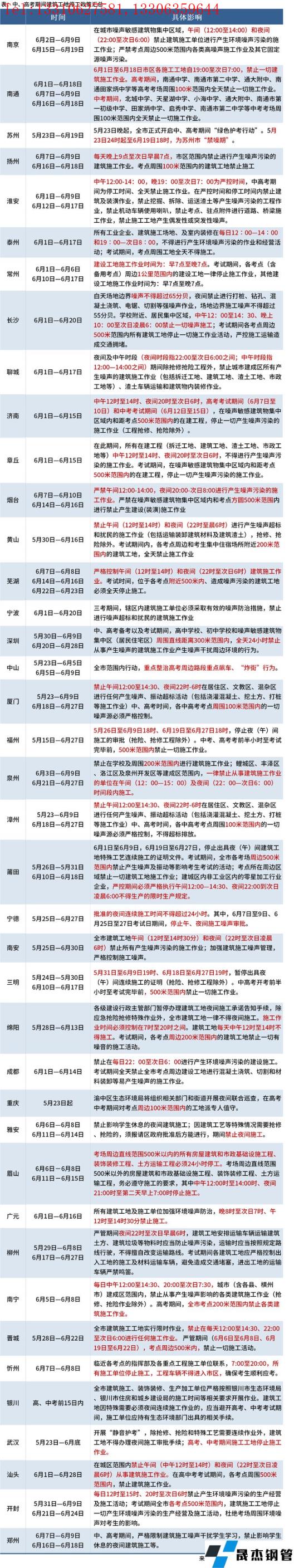 免責聲明:本網站(山東聊城晟杰無縫鋼管廠www.yztongfa.com)刊載的“中高考期間,40城建筑工地停工政策匯總”等均源于網絡,版權歸原作者所有,且僅代表原作者觀點,本文所載信息僅供參考。轉載僅為學習與交流之目的,如無意中侵犯您的合法權益,請及時聯系刪除。本網站刊登此篇文章并不意味著本站贊同其觀點或證實其內容的真實性,我們不對其科學性、嚴肅性等作任何形式的保證。如果侵犯了您的版權,請盡快聯系我們予以撤銷,謝謝合作!