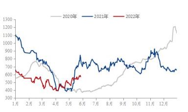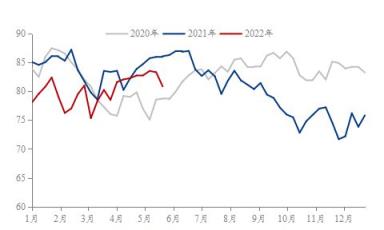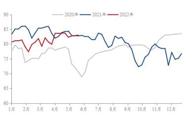 首先,供給端方面,據(jù)調(diào)研顯示,截至2022年5月27日,37家熱軋板卷生產(chǎn)企業(yè)中,無縫厚壁鋼管廠家產(chǎn)能利用率為80.87%,能夠從圖2可以觀察到2022年1-5月份,熱軋產(chǎn)能利用率是低于2021年同期水平,因此無縫厚壁鋼管廠家熱軋產(chǎn)量給到市場的供給壓力是在持續(xù)減弱,對于熱軋價格起到了一定的支撐作用。再來看下無縫厚壁鋼管廠家的冷軋產(chǎn)能利用率, 2020年與2021年冷軋產(chǎn)能利用率均值分別為77.96%與81.05%。截至2022年5月27日,29家冷軋板卷生產(chǎn)企業(yè)中,冷軋產(chǎn)能利用率為83.04%,從年同比數(shù)據(jù)對比之下,能夠反映出冷軋產(chǎn)能利用率已經(jīng)達到相對飽和狀態(tài)。