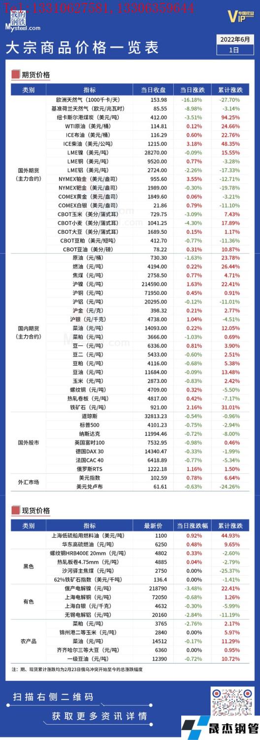 免責聲明:本網站(山東聊城晟杰無縫鋼管廠www.yztongfa.com)刊載的“俄烏局勢丨大宗商品價格一覽表(6月1日)”等均源于網絡,版權歸原作者所有,且僅代表原作者觀點,本文所載信息僅供參考。轉載僅為學習與交流之目的,如無意中侵犯您的合法權益,請及時聯系刪除。本網站刊登此篇文章并不意味著本站贊同其觀點或證實其內容的真實性,我們不對其科學性、嚴肅性等作任何形式的保證。如果侵犯了您的版權,請盡快聯系我們予以撤銷,謝謝合作!