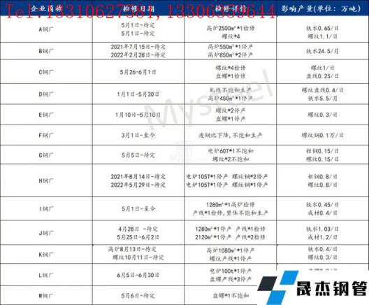 附:江蘇省無縫厚壁鋼管廠家庫存及檢修情況