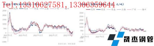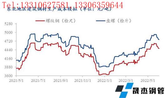 具體來看,2022年6月東北建筑厚壁無縫鋼管模擬月均利潤中廣州螺紋鋼利潤環(huán)比減少322元/噸、出現(xiàn)了132元/噸的虧損,盤螺利潤環(huán)比減少180元/噸、出現(xiàn)了180元/噸的虧損,海口方向螺紋鋼、盤螺利潤也僅為11元/噸、49元/噸,加上4月份廣州、海口也處于墊底狀態(tài),說明當(dāng)前華南市場依舊不是東北資源的最佳流向,而華北、華東5月份疫情分控相對(duì)較嚴(yán)格,資源流動(dòng)受限較多,利潤模型上雖超了華南,但無縫厚壁鋼管廠家實(shí)際獲取利潤或相對(duì)有限。