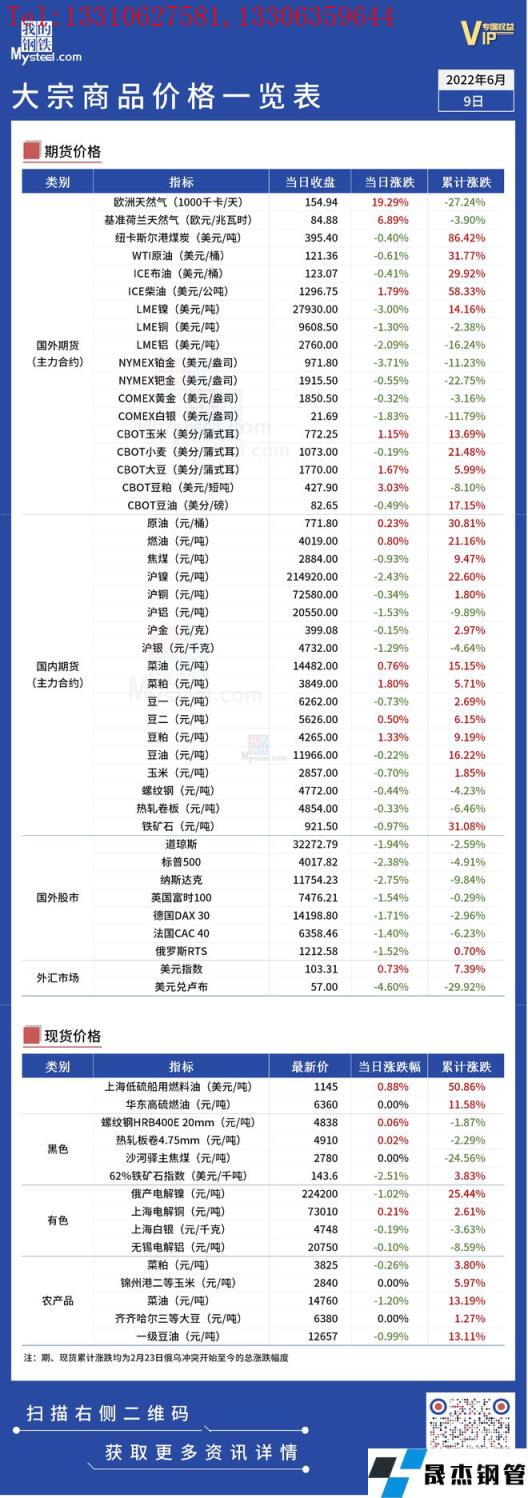 免責聲明:本網站(山東聊城晟杰無縫鋼管廠www.yztongfa.com)刊載的“俄烏局勢丨大宗商品價格一覽表(6月9日)”等均源于網絡,版權歸原作者所有,且僅代表原作者觀點,本文所載信息僅供參考。轉載僅為學習與交流之目的,如無意中侵犯您的合法權益,請及時聯系刪除。本網站刊登此篇文章并不意味著本站贊同其觀點或證實其內容的真實性,我們不對其科學性、嚴肅性等作任何形式的保證。如果侵犯了您的版權,請盡快聯系我們予以撤銷,謝謝合作!