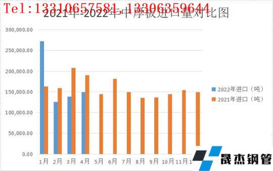 圖4 中厚板產品2021-2022年度進口量對比圖