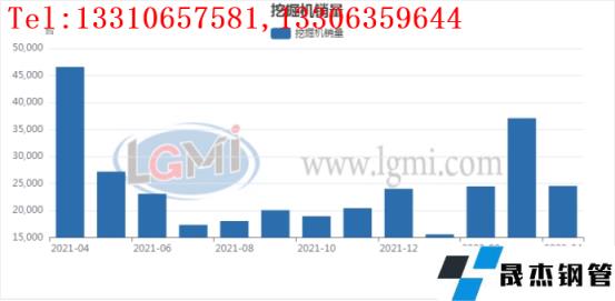 分行業來看,4月份國內挖掘機銷量為24534臺,環比3月份減少約12551臺。同比21年同期減少約22038臺。