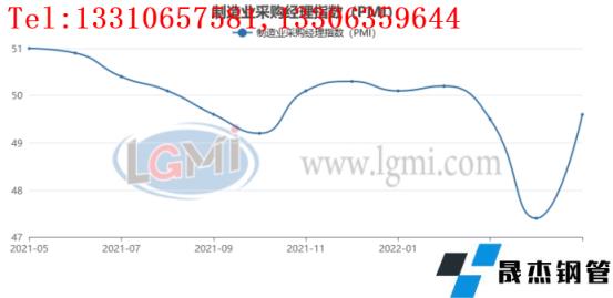 中國物流與采購聯合會、國家統計局服務業調查中心發布的2022年5月份中國制造業采購經理指數(PMI)為49.6%,比上月上升2.2個百分點。從13個分項指數來看,同上月相比,生產指數、新訂單指數、新出口訂單指數、采購量指數、進口指數、原材料庫存指數、從業人員指數、供應商配送時間指數和生產經營活動預期指數上升,指數升幅在0.4至6.9個百分點之間;積壓訂單指數、產成品庫存指數、購進價格指數和出廠價格指數下降,指數降幅在1.0至8.4個百分點之間。
