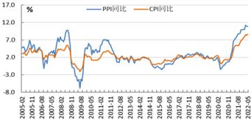 美國CPI同比漲幅在4月份小幅回落之后,5月份上升至8.6%,再創(chuàng)近40年來的新高。通脹形成的原因比較復雜,既有疫情之后貨幣超發(fā)、供應鏈受阻等因素的影響,也有此前貿(mào)易保護播下的種子,還有今年烏克蘭危機導致的能源和糧食的供應缺口。近期美國財長耶倫表示,美國的食品和能源價格還有進一步上漲的風險。