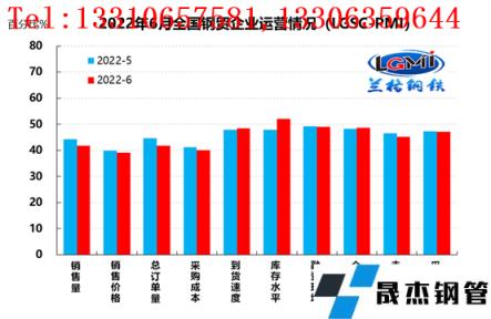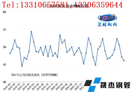 云商平臺(tái)統(tǒng)計(jì)發(fā)布的2022年6月份厚壁無(wú)縫鋼管流通業(yè)PMI總指數(shù)為46.1%,比上月下降1.1個(gè)百分點(diǎn),在收縮區(qū)間內(nèi)持續(xù)下滑。從分類(lèi)指數(shù)看,構(gòu)成厚壁無(wú)縫鋼管流通業(yè)