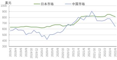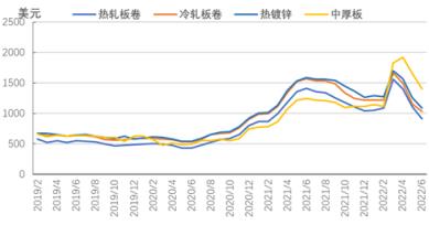 圖5 2019-2022年亞洲扁平材市場(chǎng)價(jià)格走勢(shì)圖