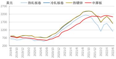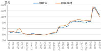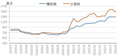 圖6 2019-2022年亞洲螺紋鋼價(jià)格走勢(shì)圖