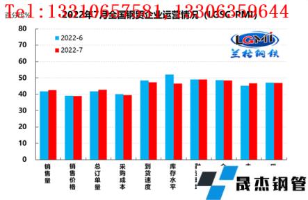 云商平臺統(tǒng)計發(fā)布的2022年7月份厚壁無縫鋼管流通業(yè)PMI總指數(shù)為46.7%,比上月回升0.6個百分點,在收縮區(qū)間內(nèi)低位回升。從分類指數(shù)看,構(gòu)成厚壁無縫鋼管流通業(yè)