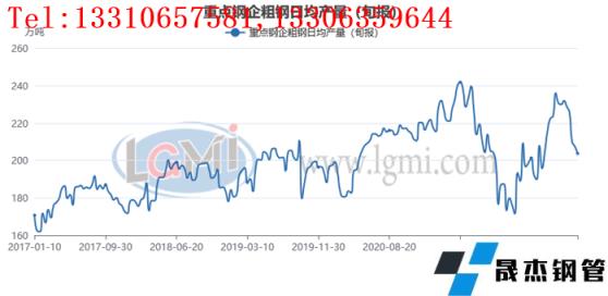 進入下半年,國內(nèi)厚壁無縫鋼管生產(chǎn)企業(yè)迫于虧損壓力,開始了大幅減產(chǎn)的進程。據(jù)中國厚壁無縫鋼管工業(yè)協(xié)會統(tǒng)計數(shù)據(jù)顯示,2022年7月上中旬重點鋼企生鐵日均產(chǎn)量191.2萬噸,比上月下降4.58%,同比上升1.44%;粗鋼日均產(chǎn)量205.79萬噸,比上月下降6.43%,同比下降4.00%(詳見圖2);厚壁鋼管日均產(chǎn)量202.04萬噸,比上月下降6.94%,同比下降2.33%。