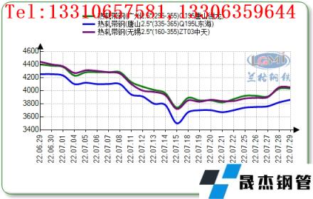 七月份國內(nèi)帶鋼市場(chǎng)呈現(xiàn)震蕩下行趨勢(shì)。月初帶鋼市場(chǎng)價(jià)格整體趨弱運(yùn)行,低價(jià)資源成交尚可,期貨市場(chǎng)寬幅震蕩,終端逢低補(bǔ)庫,高價(jià)成交疲軟。月中市場(chǎng)價(jià)格持續(xù)下行,整體成交偏弱,淡季效應(yīng)顯現(xiàn)導(dǎo)致市場(chǎng)價(jià)格大幅走低,下游商貿(mào)情緒觀望為主。北方地區(qū)小窄帶方面,月末隨期貨震蕩走高,倒掛情況稍有緩解,為維持訂單及正常運(yùn)轉(zhuǎn),被動(dòng)維持生產(chǎn)。7月帶鋼庫存持續(xù)小幅下降,無縫鋼管廠家產(chǎn)量也有所下降,需求端仍未得到改善。南方地區(qū)因疫情反復(fù),加之目前正處于傳統(tǒng)淡季,商貿(mào)多以觀望為主,隨期貨盤整運(yùn)行,市場(chǎng)商貿(mào)心態(tài)不穩(wěn),多以降庫為主,終端下游市場(chǎng)仍不景氣,觀望態(tài)度濃厚,實(shí)際需求延續(xù)偏弱,加之下游開工維持低位,帶鋼底部支撐不足。截止至7月29日,華北地區(qū)唐山小窄帶報(bào)價(jià)主流為3950元/噸,唐山355系窄帶鋼主流報(bào)價(jià)為3860元/噸,天津355系窄帶主流報(bào)價(jià)為4130元/噸,華東地區(qū)無錫355系窄帶主流報(bào)價(jià)為4050元/噸,華南地區(qū)廣州355系窄帶主流報(bào)價(jià)為4030元/噸。