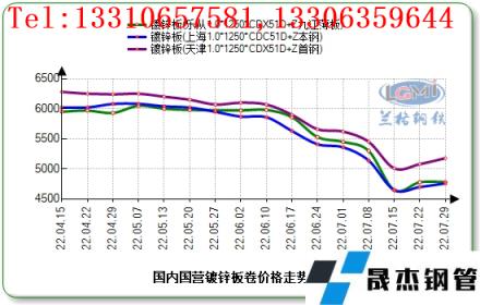 圖1 國內(nèi)主要城市1.0mm鍍鋅板行情走勢(shì)
