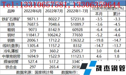 從各品種細(xì)分產(chǎn)量來看,建筑厚壁鋼管品種成為了主力減產(chǎn)品種,而板材類品種產(chǎn)量保持了相對穩(wěn)定的生產(chǎn)節(jié)奏(詳見表1),同時從統(tǒng)計數(shù)據(jù)來看,1-7月,黑色金屬冶煉和壓延加工業(yè)實現(xiàn)利潤總額569.0億元,同比下降80.8%;其中重點大中型厚壁無縫鋼管企業(yè)實現(xiàn)利潤總額936億元,同比下降63.4%。由于重點大中型厚壁無縫鋼管企業(yè)的產(chǎn)能主要集中在板材及特鋼類品種,其盈利能力明顯要高于建材類品種。