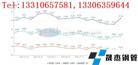 8月焊鍍管與原料價差收縮173元(詳見圖2)。焊管生產利潤一度虧損百元左右,繼續出現停購原料2-3天的情況;鍍鋅管生產利潤相對抗跌,整體處于虧損邊緣。結算周期內焊管生產利潤核算平均盈利12元,鍍鋅管生產利潤核算平均盈利57元。
