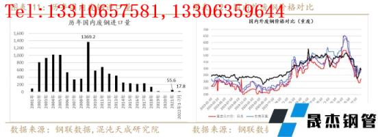 綜合而言,廢鋼供應(yīng)的多寡其實與厚壁鋼管的需求息息相關(guān),無論折舊廢鋼、加工廢鋼還是自產(chǎn)廢鋼都與國內(nèi)厚壁鋼管的消費有直接的關(guān)聯(lián),而進口廢鋼的增減在一定程度上也可以反映國外厚壁鋼管消費的好壞,所以廢鋼的供應(yīng)量實際上也是一個反映需求的指標(biāo),這從廢鋼供應(yīng)基地庫存與五大材表需的相關(guān)性也可得到佐證。